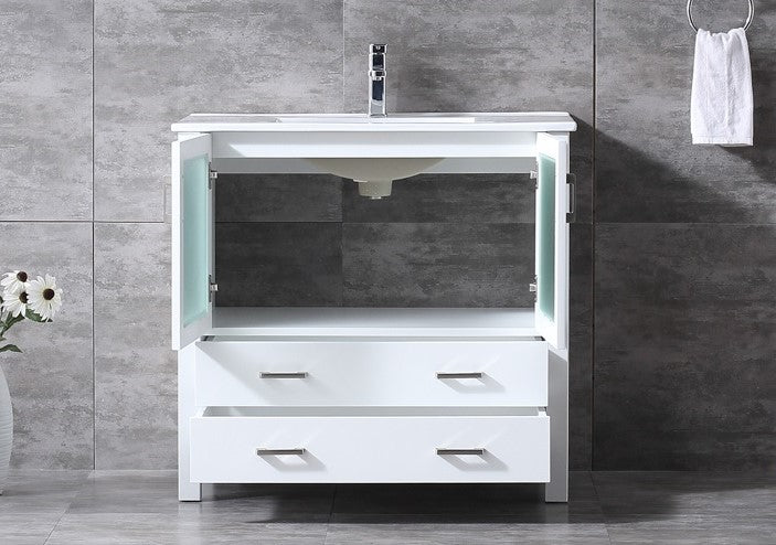 A small bathroom space doesn’t mean you have to sacrifice on style. The Volez vanity in white is designed to give your small bathroom the added storage it needs, while amping up the style factor. Available in different sleek, modern colors, and with several sizes to choose from, you can find the exact piece to fit with your bathroom’s size requirements, while matching your unique taste.