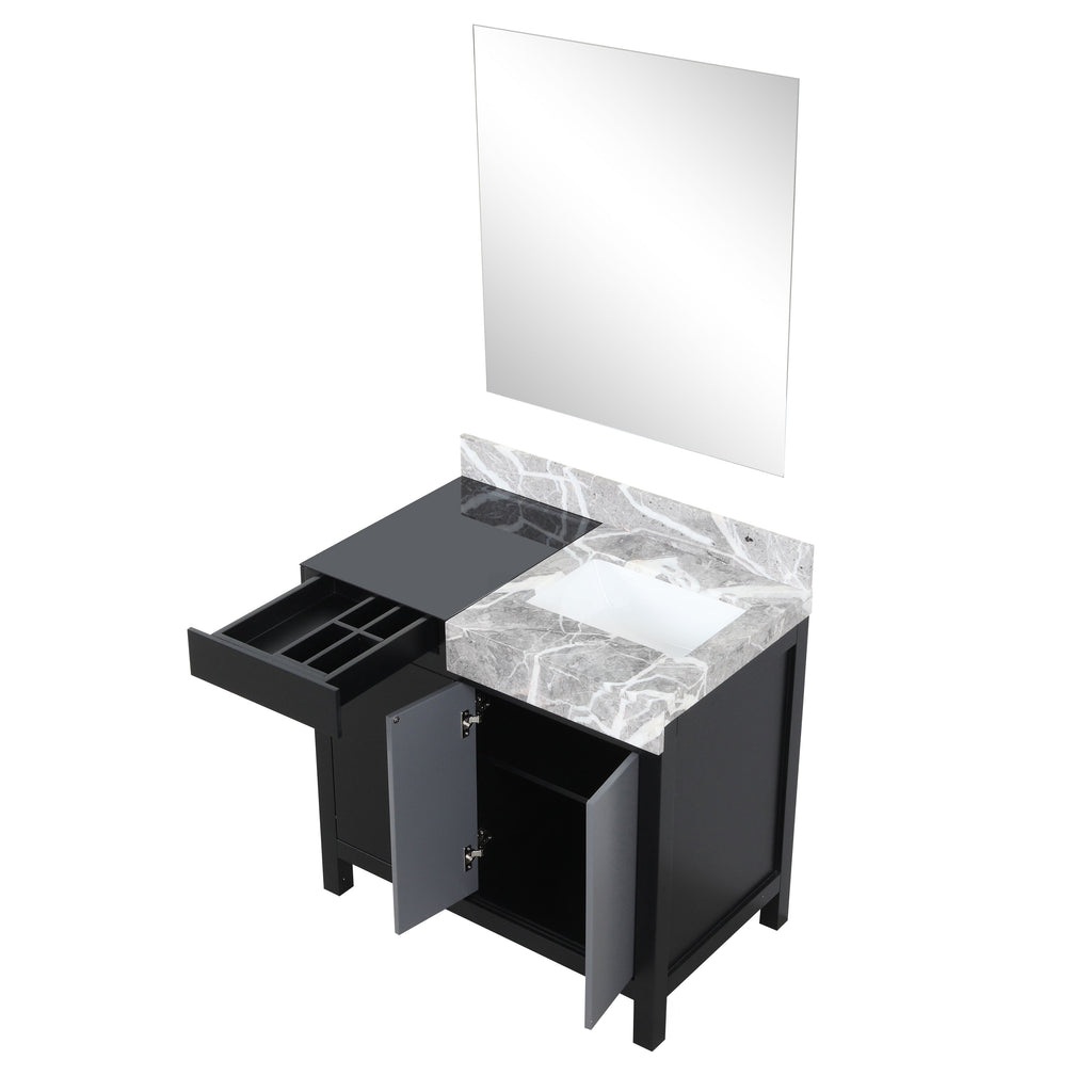 Lexora Zilara 36" Black and Grey Vanity, Castle Grey Marble Top, and White Square Sink - LZ342236SLIS000
