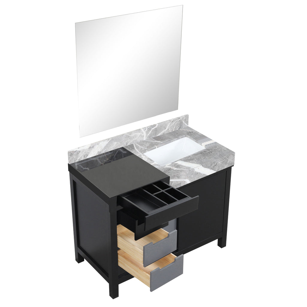 Lexora Zilara 42" Black and Grey Vanity, Castle Grey Marble Top, White Square Sink, and 34" Frameless Mirror - LZ342242SLISM34