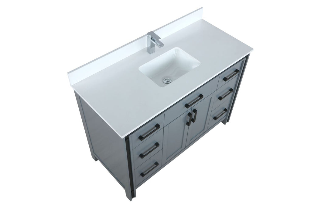 Lexora Ziva 48" Dark Grey Single Vanity, Cultured Marble Top, White Square Sink and no Mirror LZV352248SBJS000