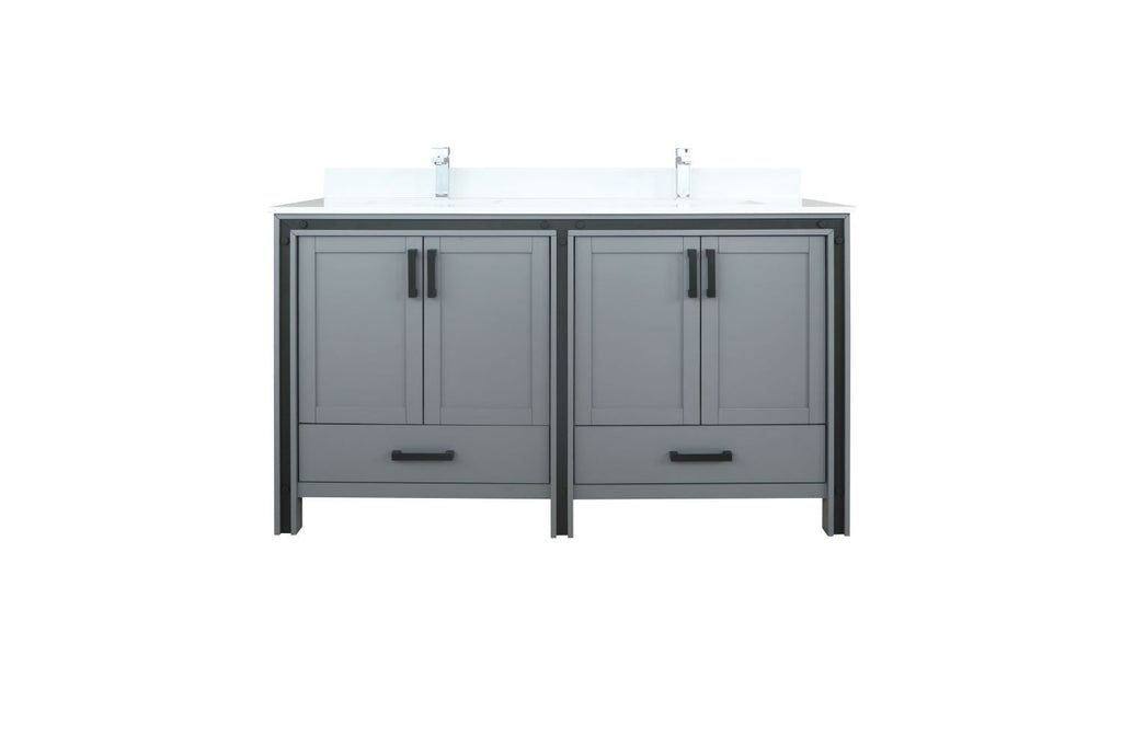 Lexora Ziva 60" Dark Grey Double Vanity, Cultured Marble Top, White Square Sink and no Mirror LZV352260SBJS000