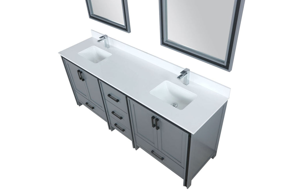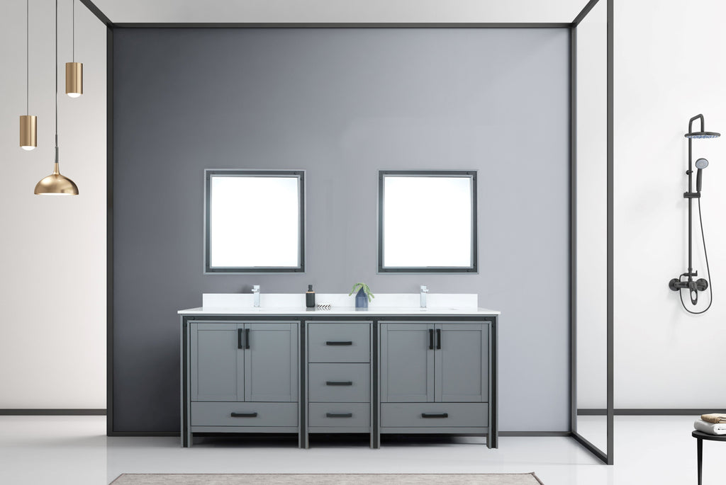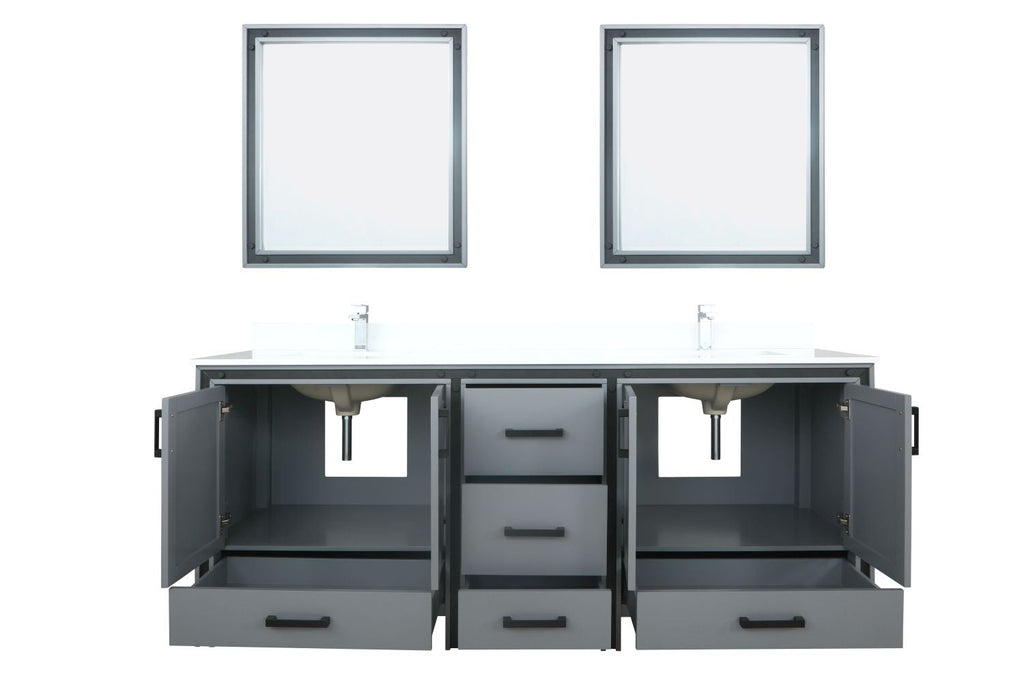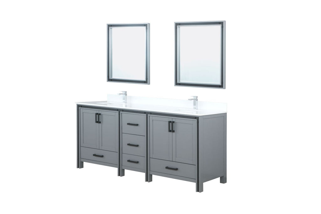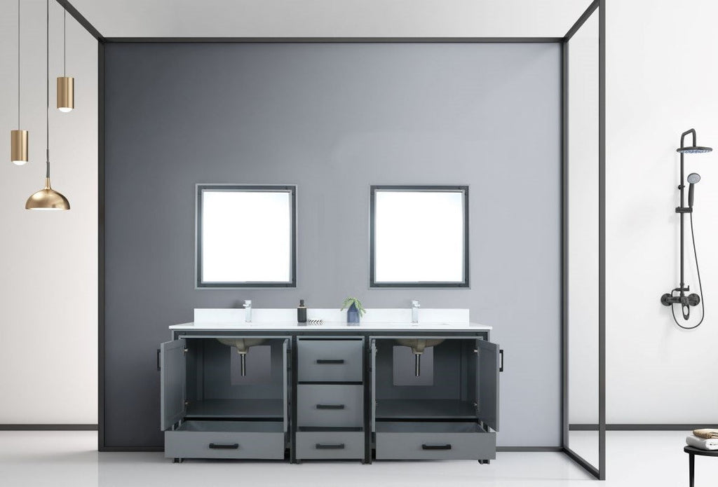 Lexora Ziva 80" Dark Grey Double Vanity, Cultured Marble Top, White Square Sink and 30" Mirrors LZV352280SBJSM30