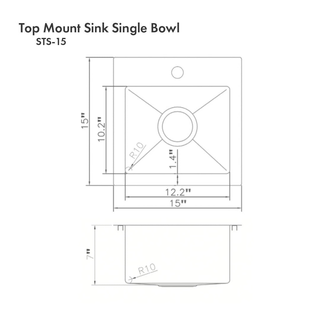 ZLINE 15" Donner Topmount Single Bowl Bar Kitchen Sink - STS-15