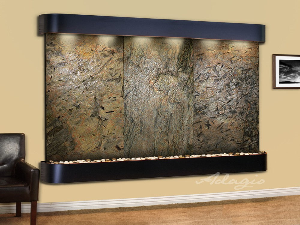 The Solitude River Waterfall features 3 stones side-by-side for a large, wall-mounted water feature for your home or office.