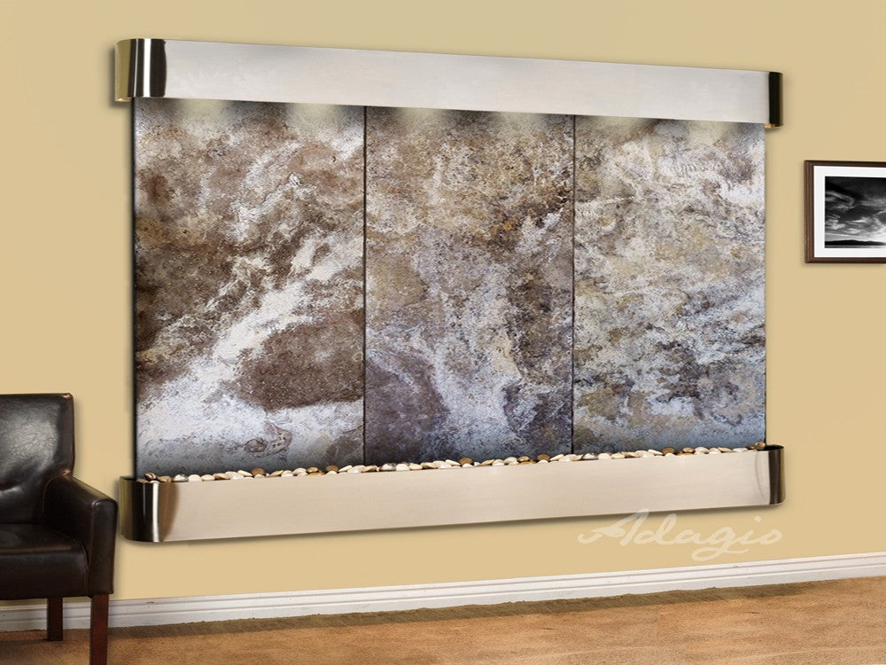 The Solitude River Waterfall features 3 stones side-by-side for a large, wall-mounted water feature for your home or office.