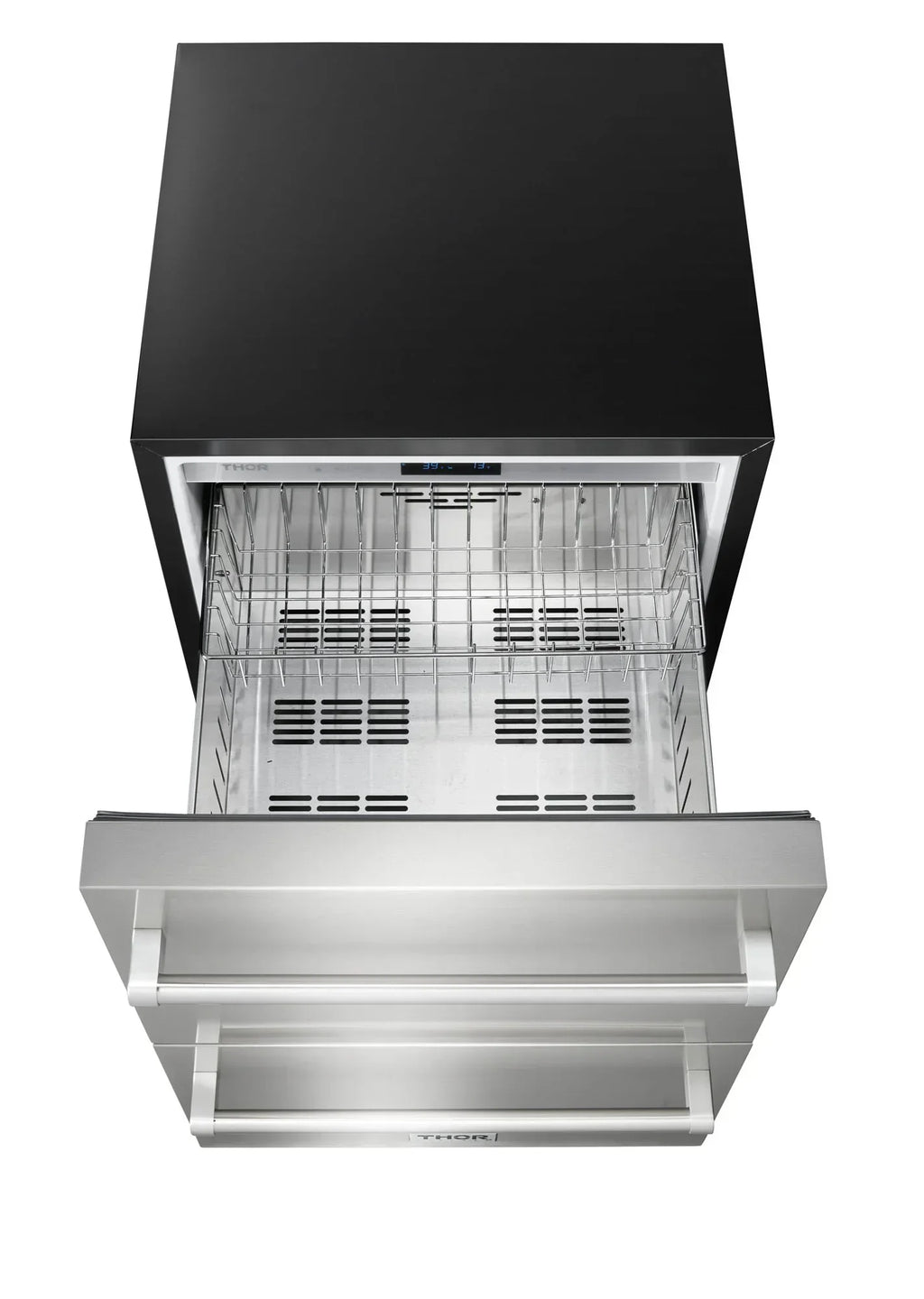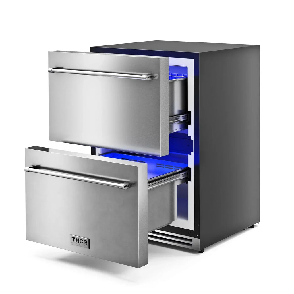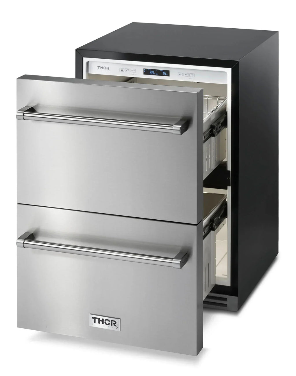 1. Thor Kitchen 24-Inch 5.4 cu. ft. Built-in Indoor/Outdoor Undercounter Double Drawer Refrigerator in Stainless Steel (TRF24U)