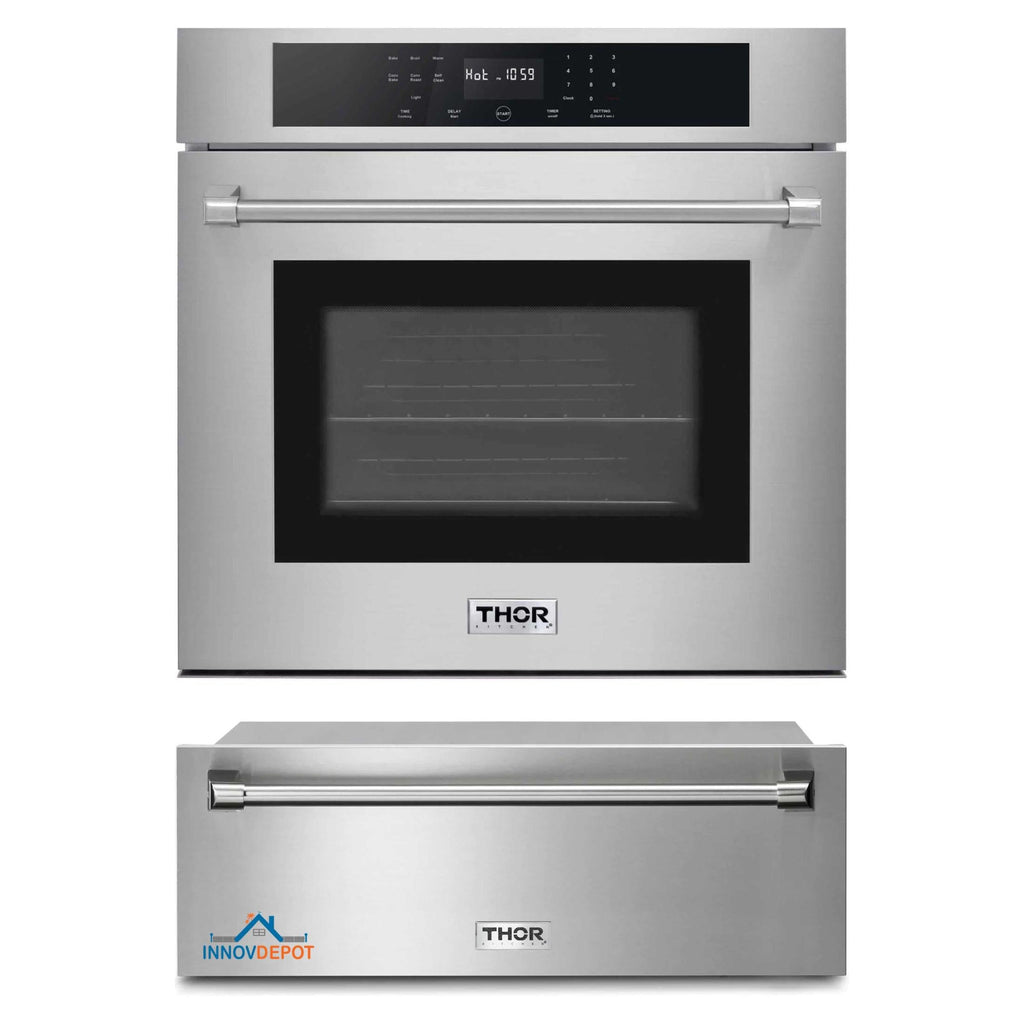 Thor Kitchen 2-Piece Pro Appliance Package - 30-Inch Electric Wall Oven & Warming Drawer in Stainless Steel