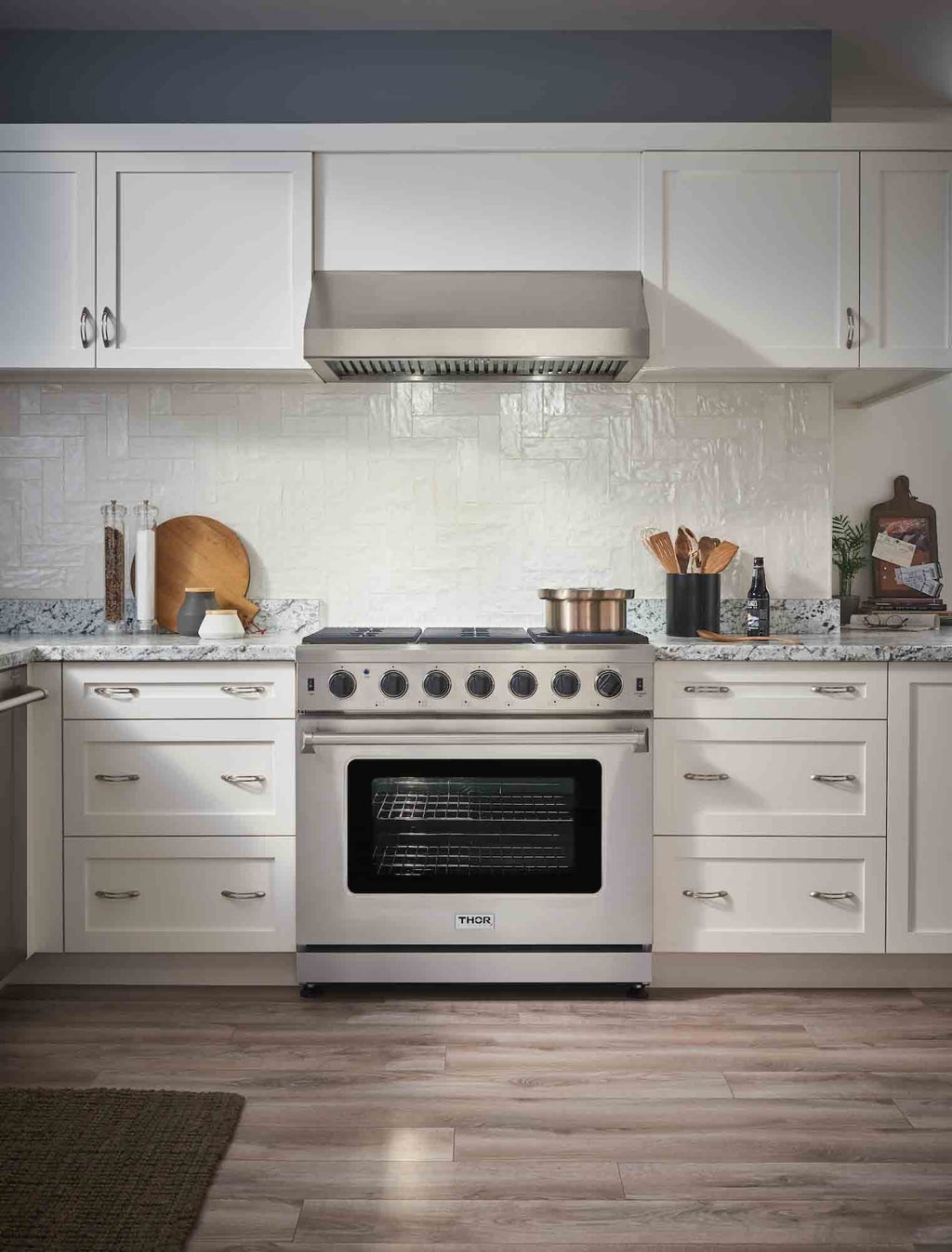 THOR Kitchen offers the power and performance of a premium professional appliance at a practical price. The THOR Kitchen 36 Inch  Gas Range is a stainless steel machine designed with professional features and functionality. With powerful burners, continuous grates and a commercial convection fan, this range takes everything from prime rib to snickerdoodles to the next level. #cooklikeagod