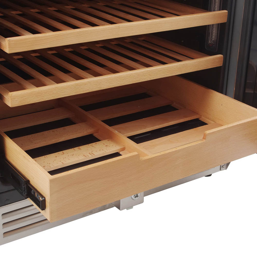 • FULL-EXTENSION RACKS - Full-extension smooth-glide wine racks allows for easy access to your prized vintage collection – the wood front give the metal racks a sleek, high-end design