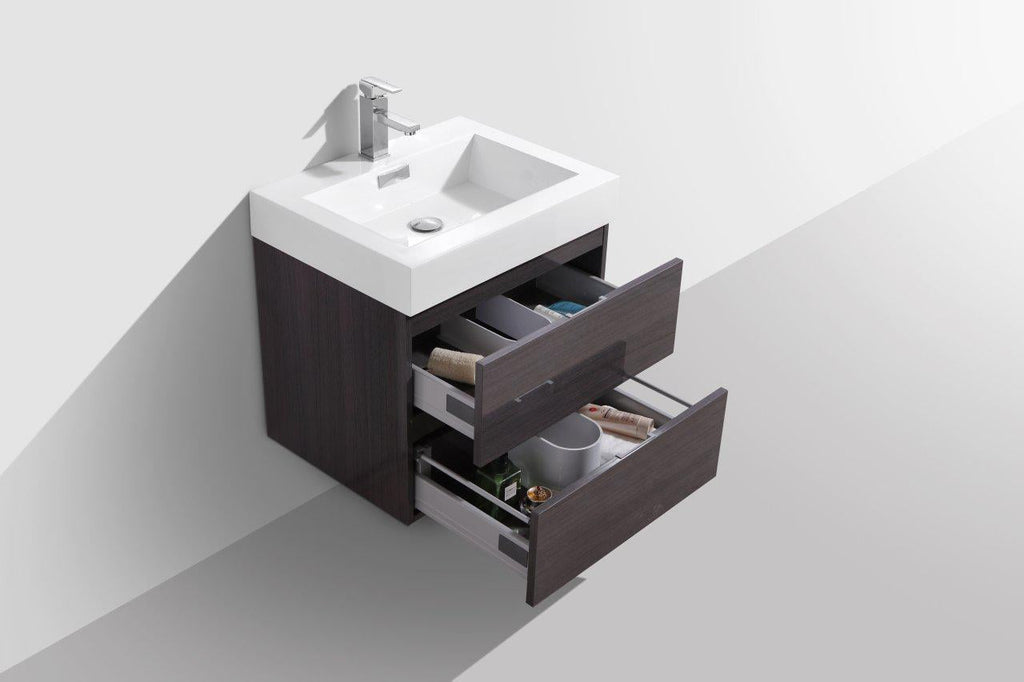 Bliss 24 in. Wall Mount Modern Bathroom Vanity - High Gloss Gray Oak
