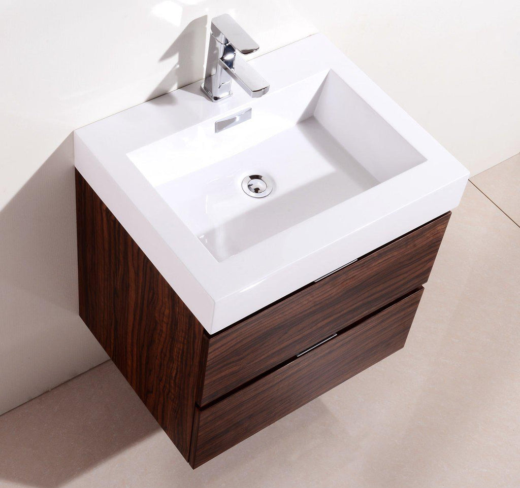 Bliss 24 in. Wall Mount Modern Bathroom Vanity - Walnut
