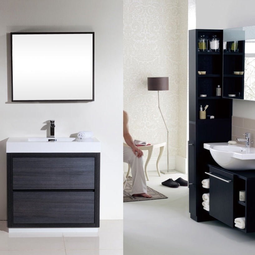 KubeBath Bliss 36" Gray Oak Free Standing Modern Bathroom Vanity FMB36-GO