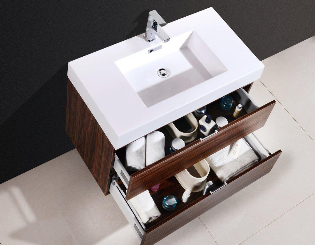 Bliss 36 in. Wall Mount Modern Bathroom Vanity - Walnut