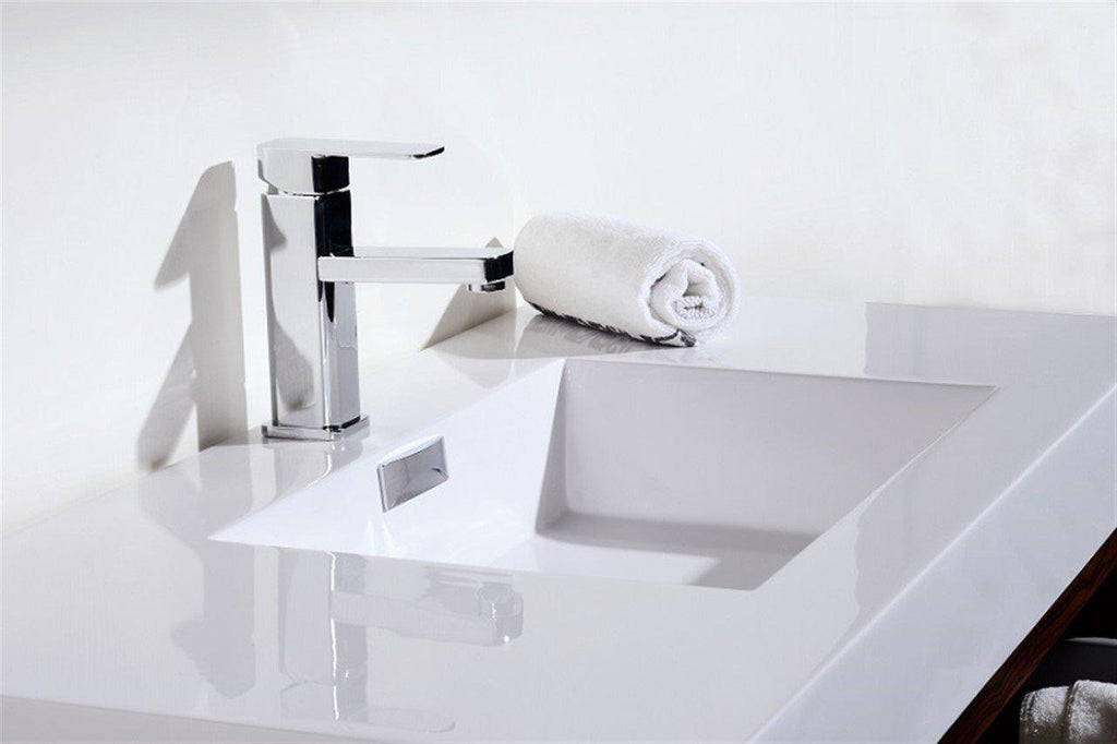 The Bliss is one of the most elegant modern Bathroom Vanities around. This 40 Inch model comes with a reinforced Acrylic sink, Marine Wood Veneer Constructed Console that is fully moister and water proof, with high quality European DTC Hardware, that provides smooth soft-closing operation drawers.