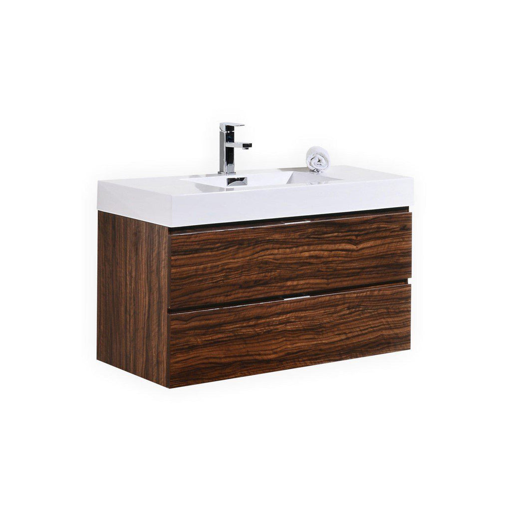 Bliss 40 in. Wall Mount Modern Bathroom Vanity - Walnut