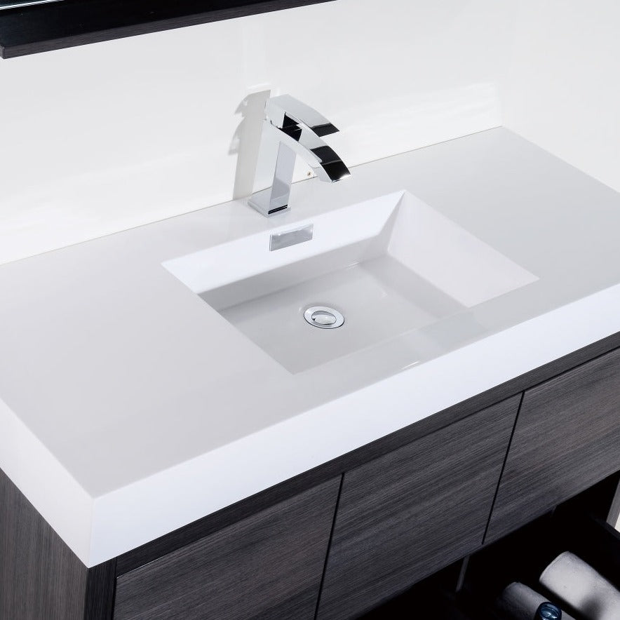 The Bliss is one of the most elegant modern Bathroom Vanities around.  This 48-inch model comes with a reinforced Acrylic composite sink, Marine Veneer Constructed Console that is fully moisture and waterproof, with high-quality European  Hardware that provides easy click, Push-Open drawers.
