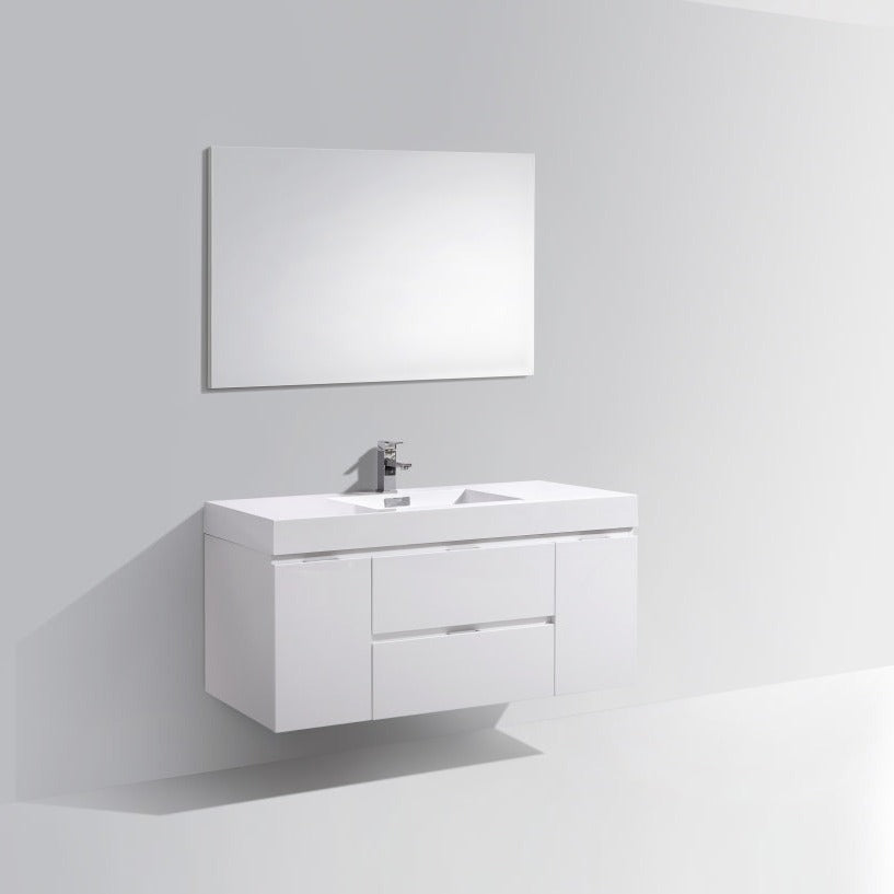 KubeBath Bliss 48" High Gloss White Wall Mount Modern Bathroom Vanity BSL48-GW