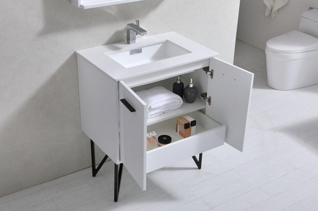 Bosco 30 in. Modern Bathroom Vanity w/ White Countertop and Matching Mirror - High Gloss White