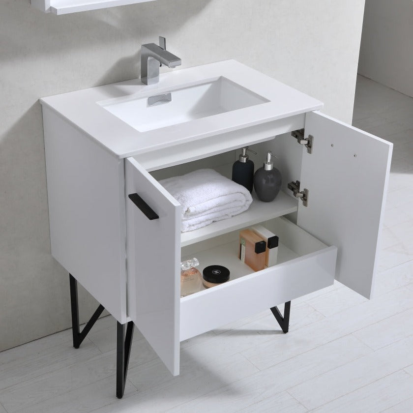 KubeBath Bosco 30" Modern Bathroom Vanity w/ Quartz Countertop and Matching Mirror KB30GW
