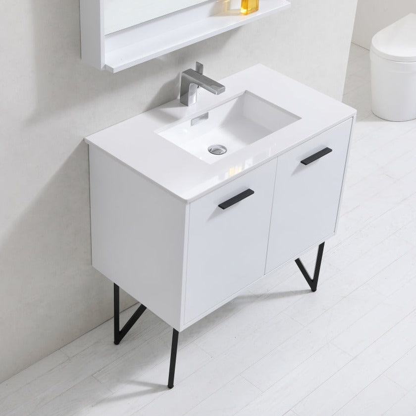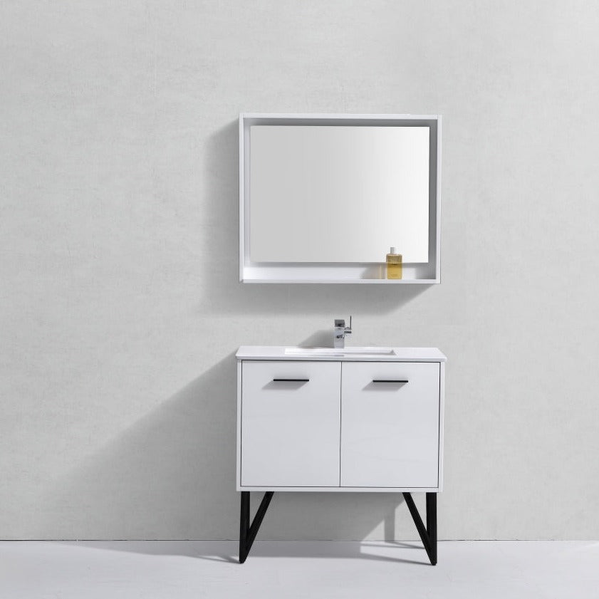 KubeBath Bosco 36" Modern Bathroom Vanity w/ Quartz Countertop and Matching Mirror KB36GW