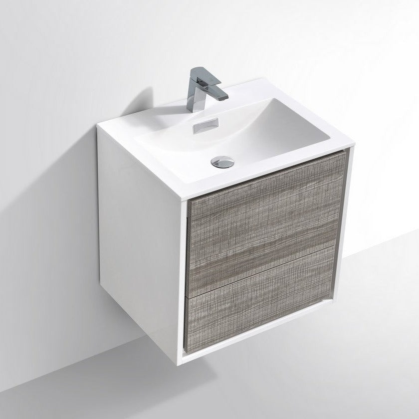 KubeBath DeLusso 24"  Ash Gray Wall Mount Modern Bathroom Vanity DL24-HGASH