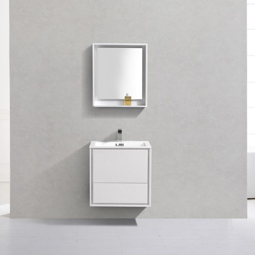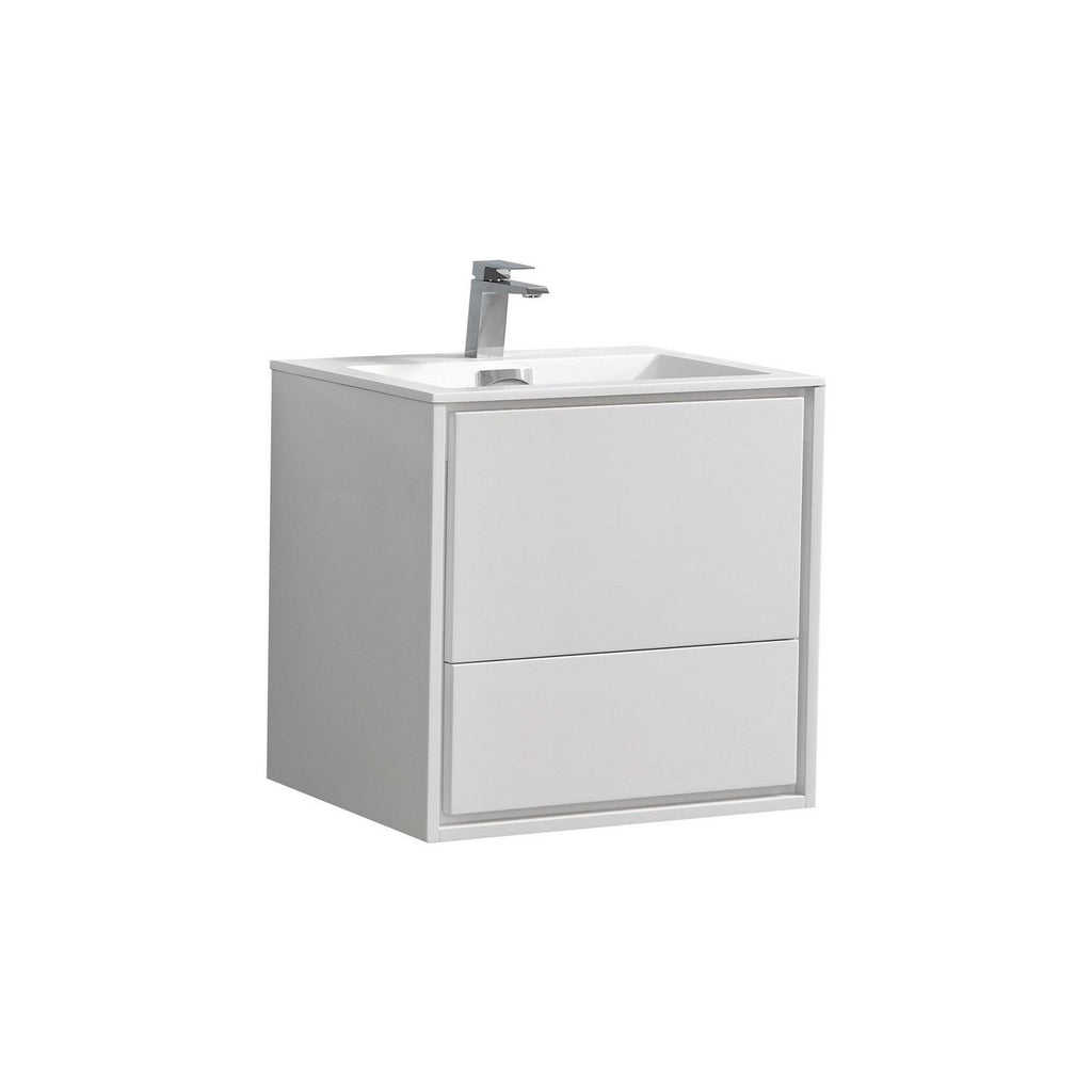 KubeBath DeLusso 24" High Glossy White Wall Mount Modern Bathroom Vanity DL24-GW