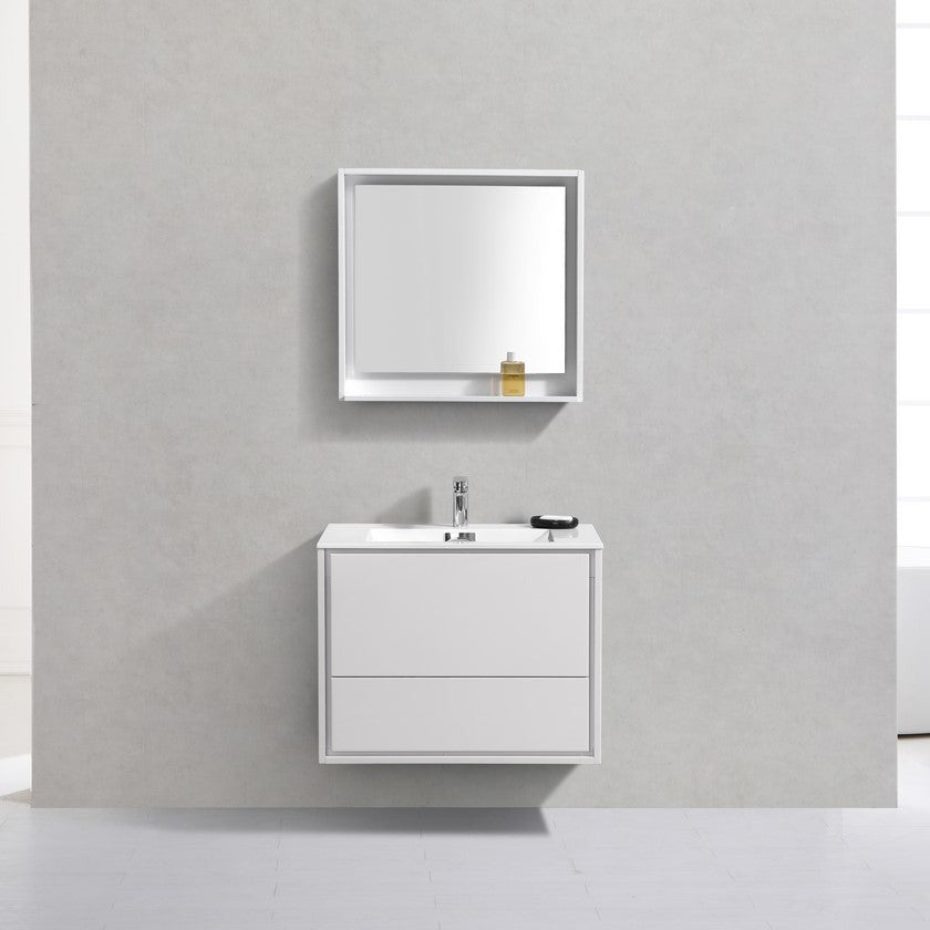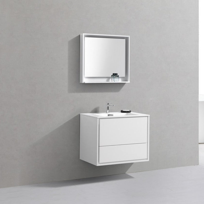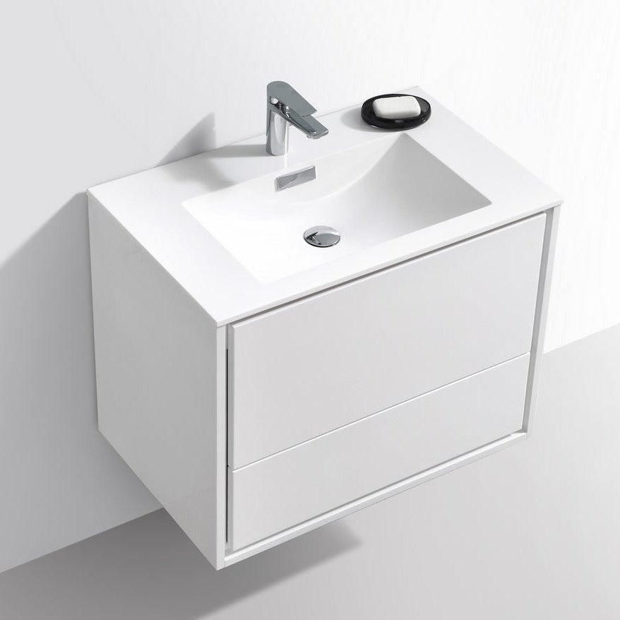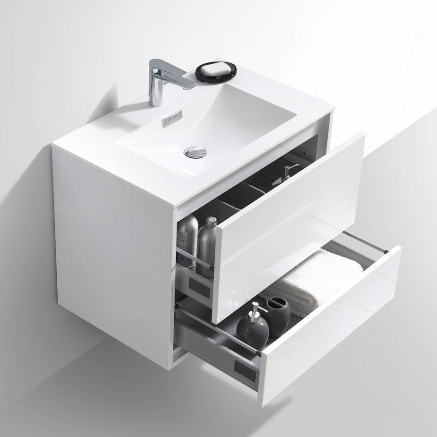 KubeBath DeLusso 30" High Glossy White Wall Mount Modern Bathroom Vanity DL30-GW