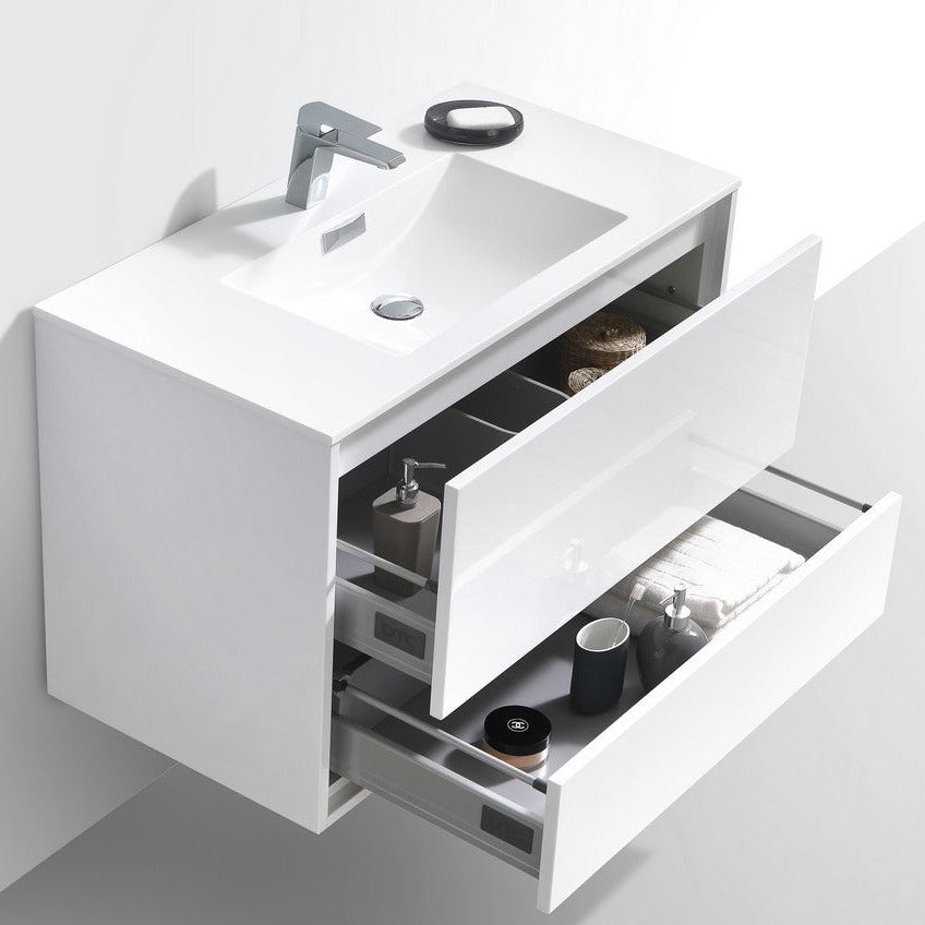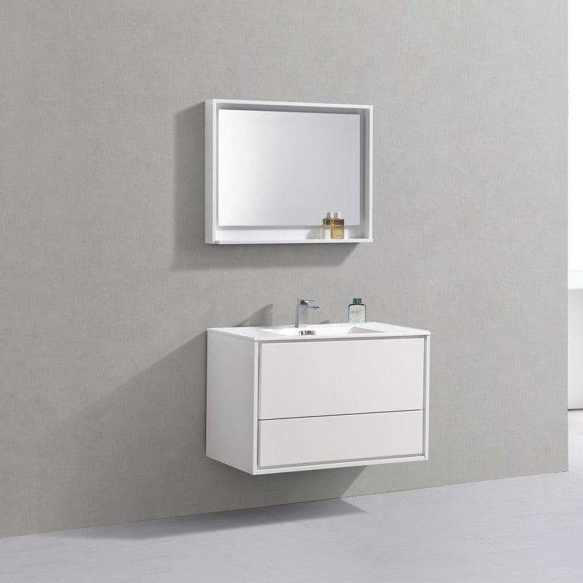 KubeBath DeLusso 36" High Glossy White Wall Mount Modern Bathroom Vanity DL36-GW