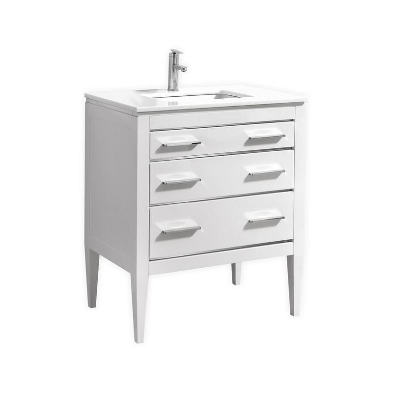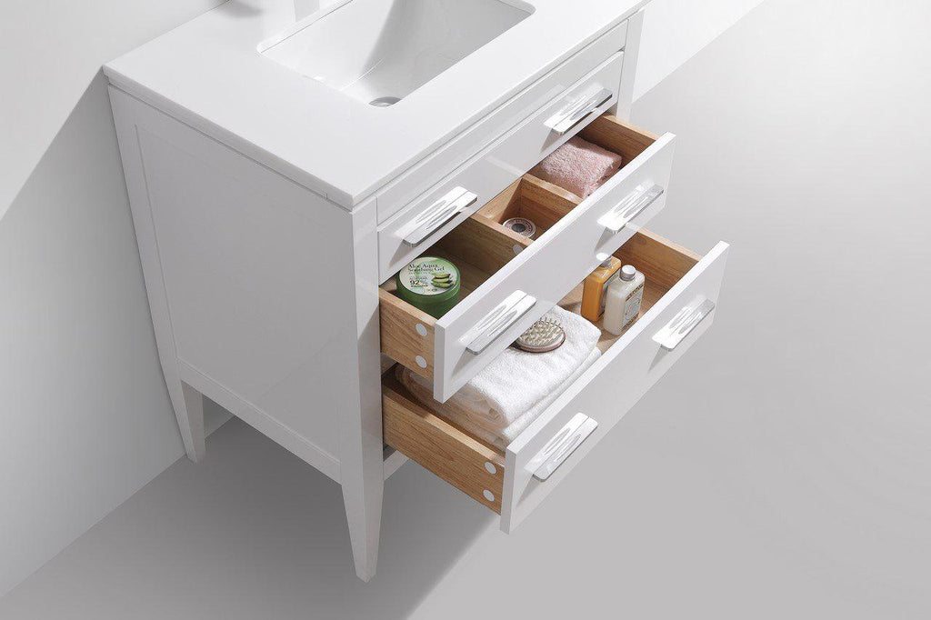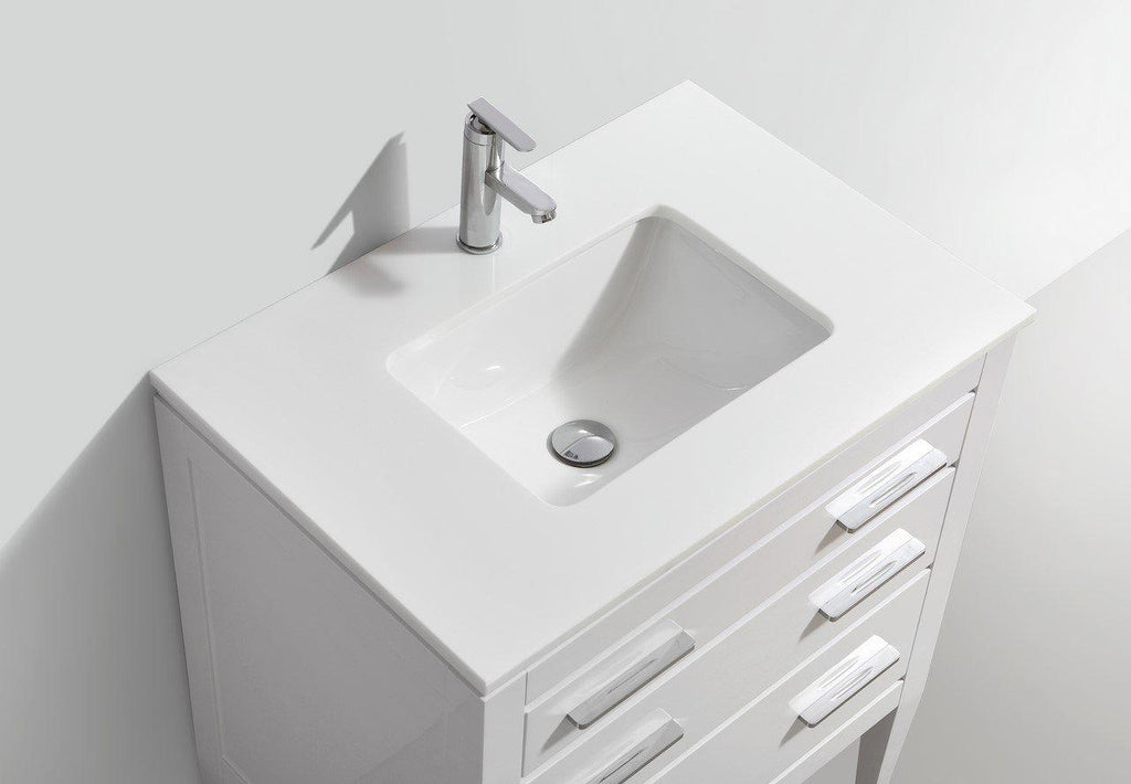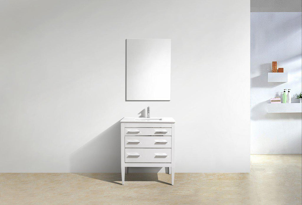 Eiffel 30'' High Gloss White Vanity W/ Quartz Counter Top