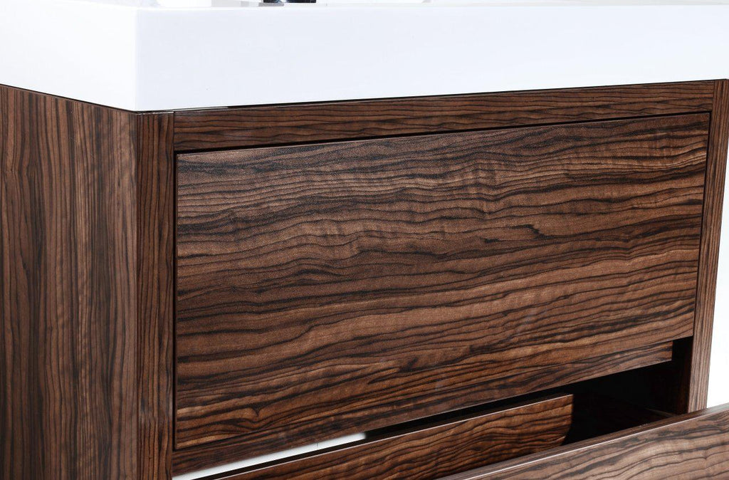The Bliss is one of the most elegant modern Bathroom Vanities around. This 40 Inch model comes with a reinforced Acrylic sink, Marine Wood Veneer Constructed Console, with high quality European DTC Hardware, that provides smooth push-open operation drawers.