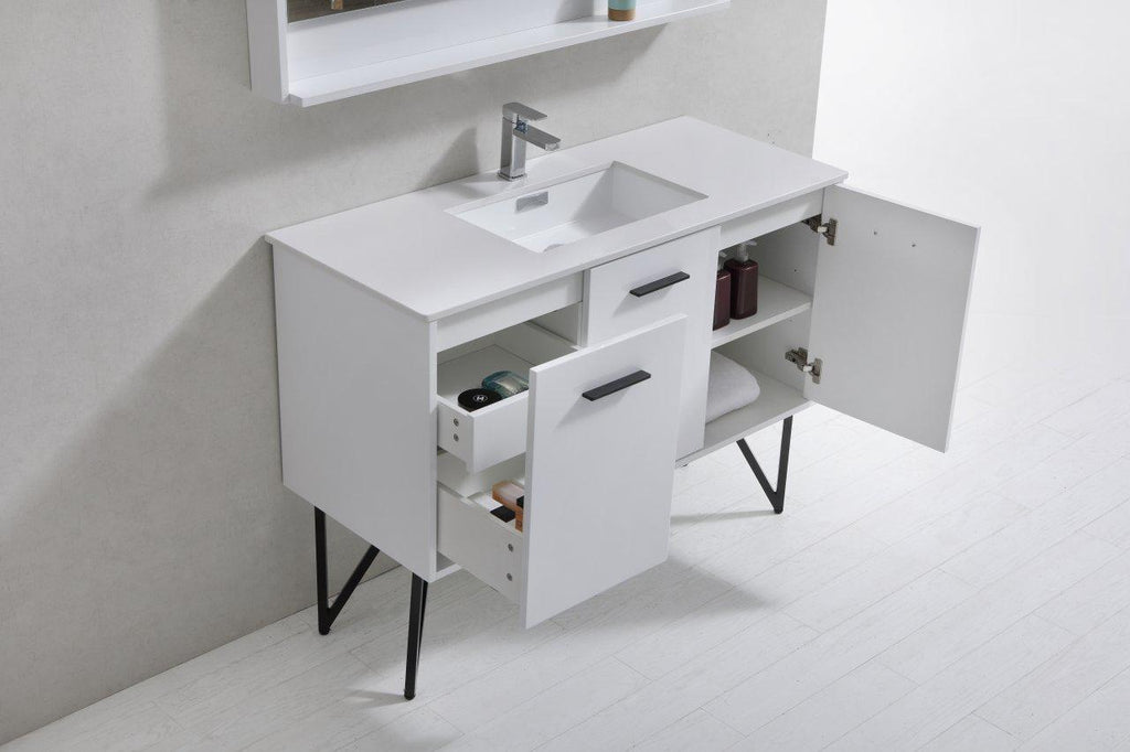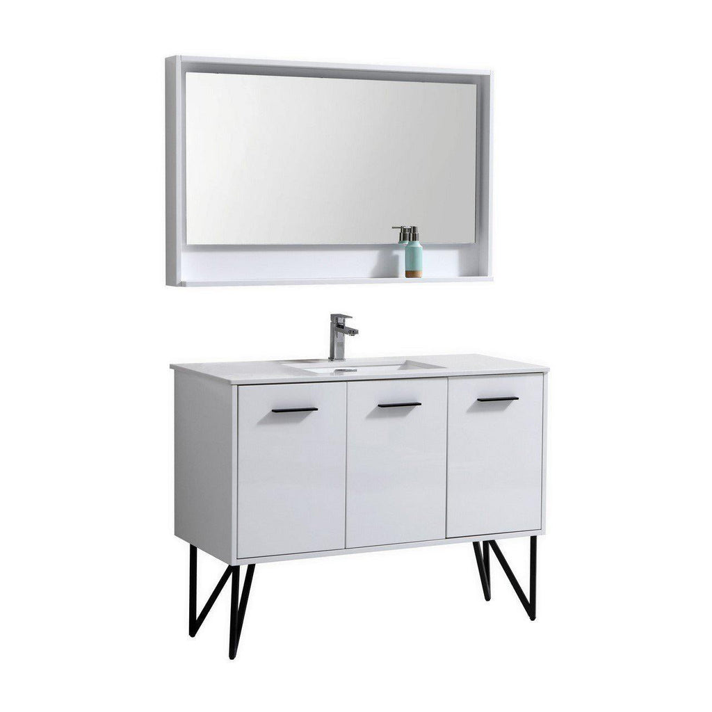 KubeBath Bosco 48 in. Modern Bathroom Vanity w/ White Countertop and Matching Mirror - High Gloss White, KB48GW