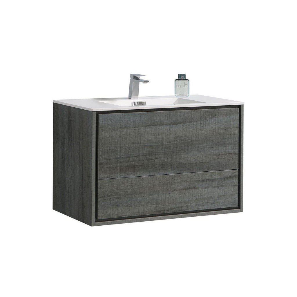KubeBath De Lusso 36 in. Wall Mount Modern Bathroom Vanity - Ocean Gray, DL36-BE