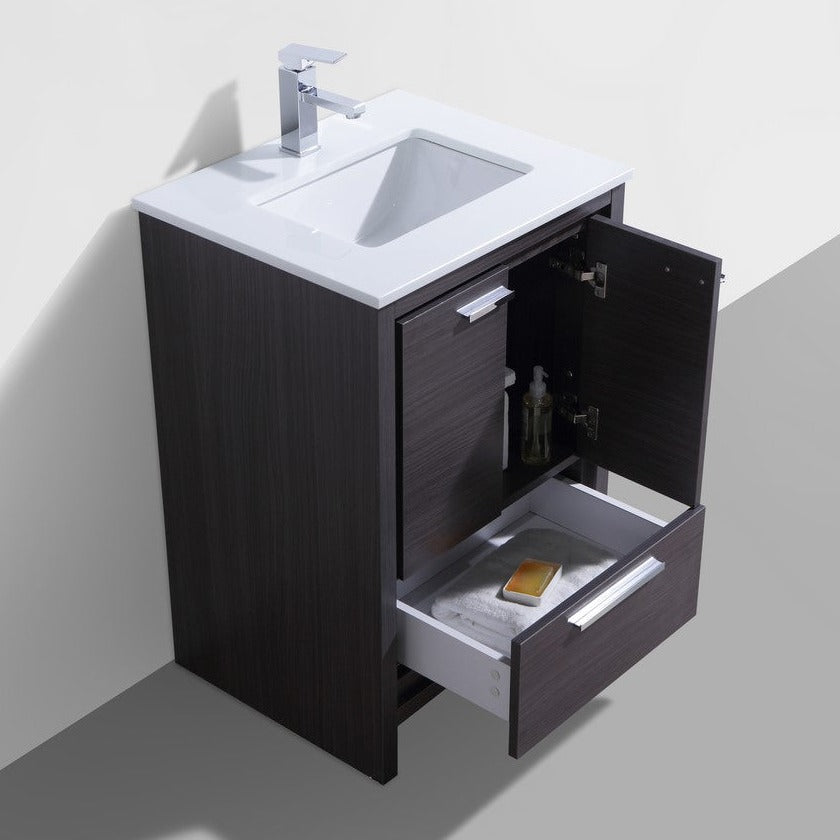 KubeBath Dolce 24″ Gray Oak Modern Bathroom Vanity with White Quartz Counter-Top AD624WB
