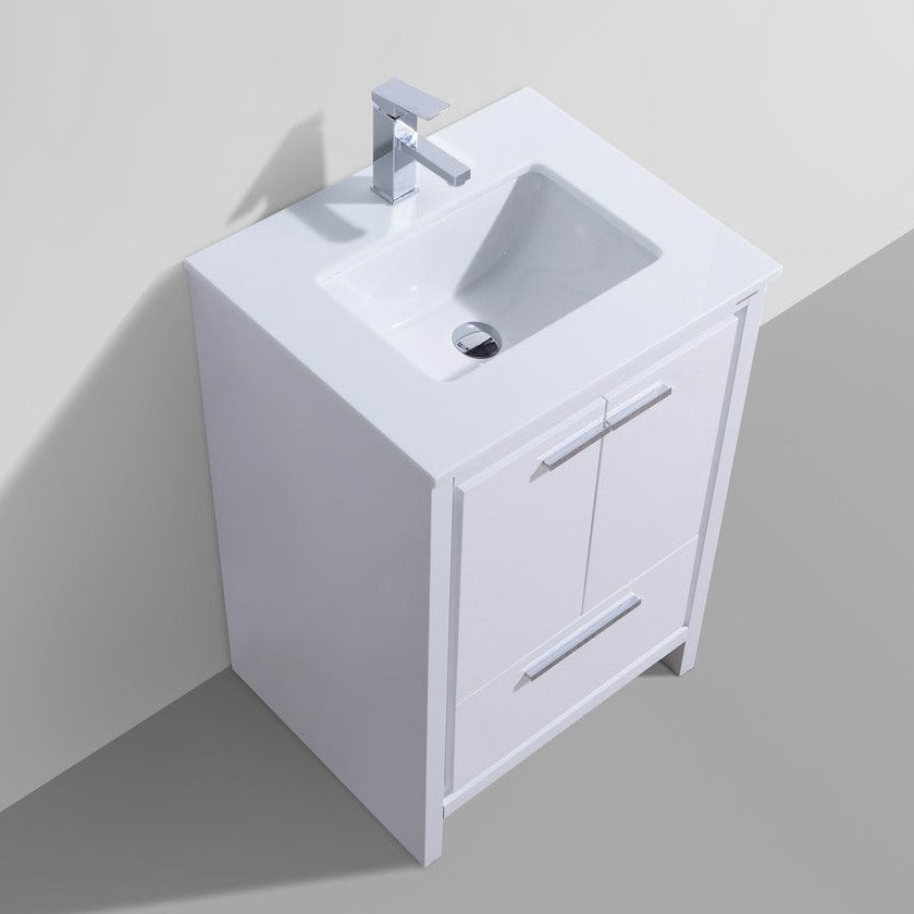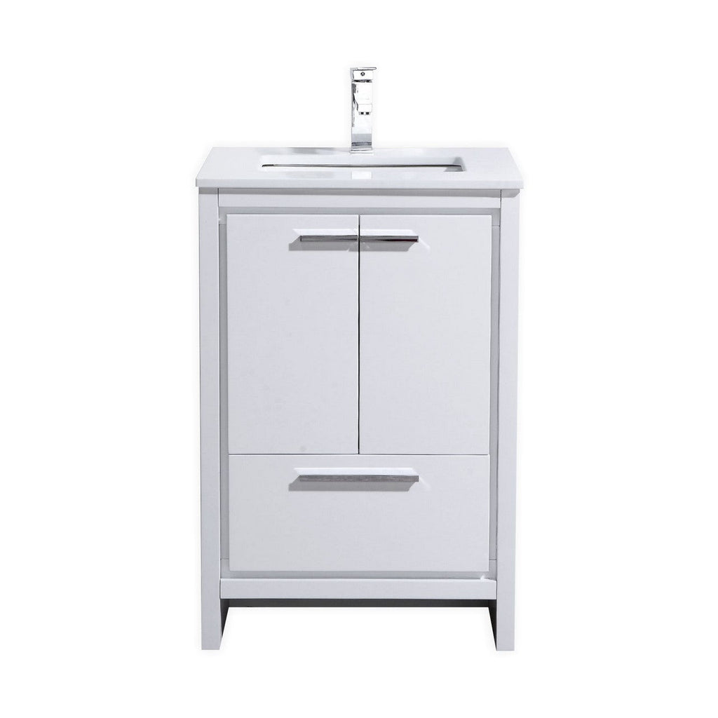 KubeBath Dolce 24″ High Gloss White Modern Bathroom Vanity with White Quartz Counter-Top AD624GW
