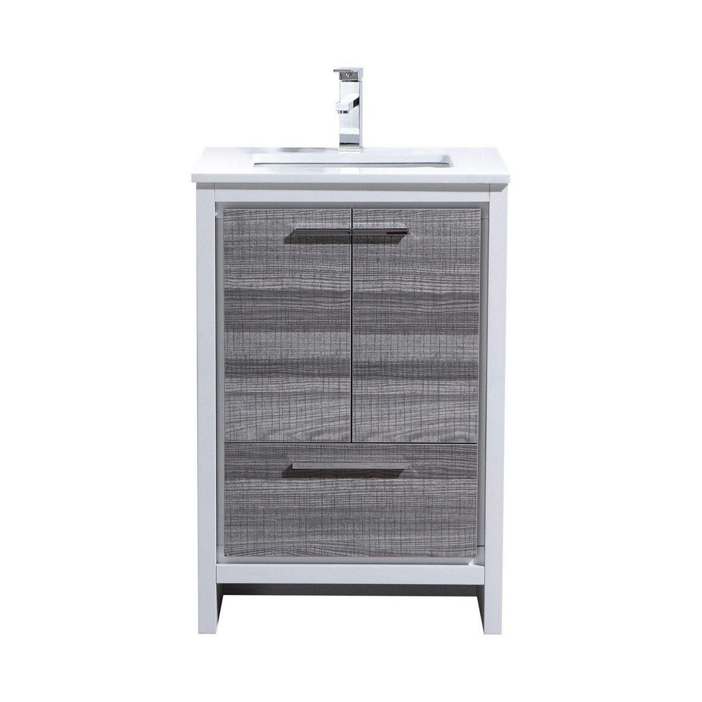 KubeBath Dolce 24 in. Modern Bathroom Vanity with Quartz Counter Top - Ash Gray
