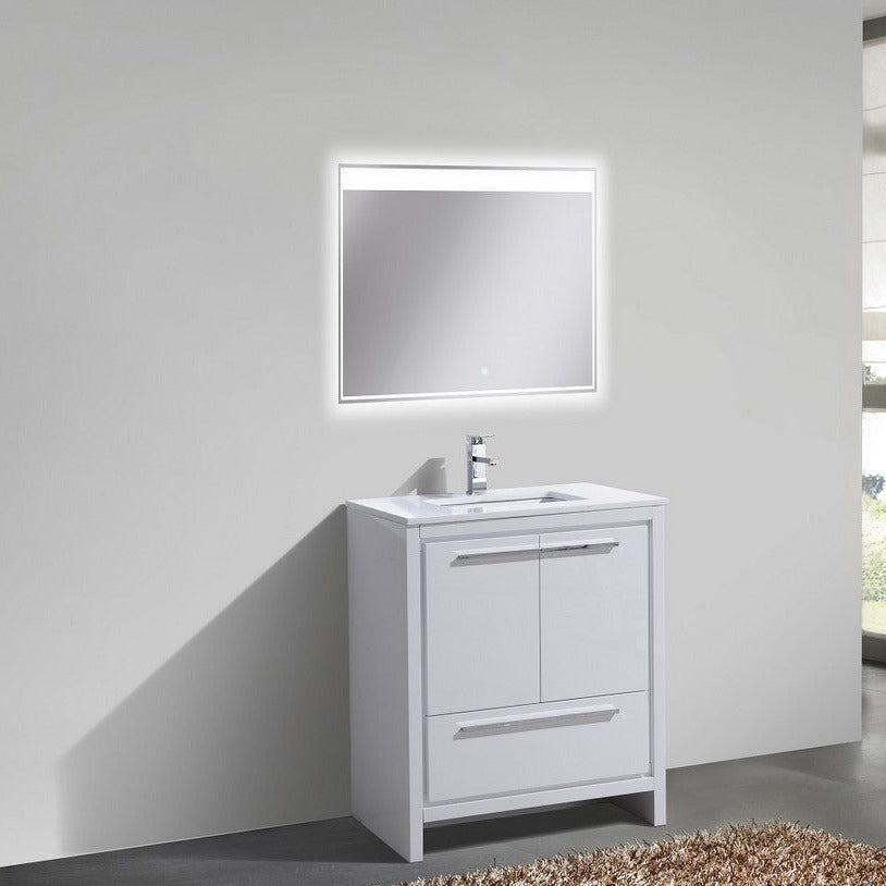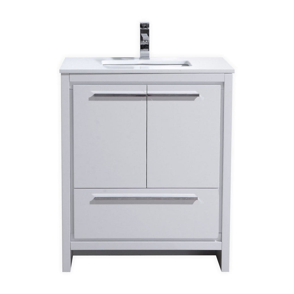 KubeBath Dolce 30″ High Gloss White Modern Bathroom Vanity with White Quartz Counter-Top AD630GW