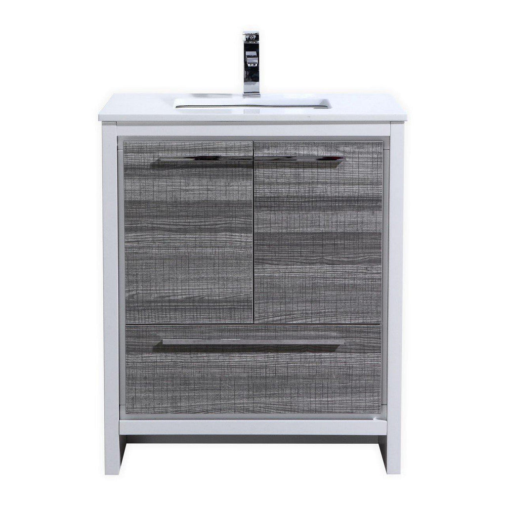 KubeBath Dolce 30 in. Modern Bathroom Vanity with White Quartz Counter Top - Ash Gray, AD630HG