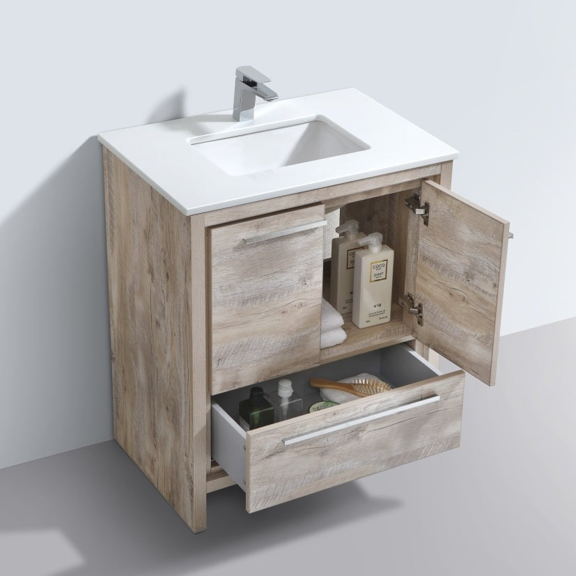 KubeBath Dolce 30″ Nature  Wood Modern Bathroom Vanity with White Quartz Counter-Top AD630NW