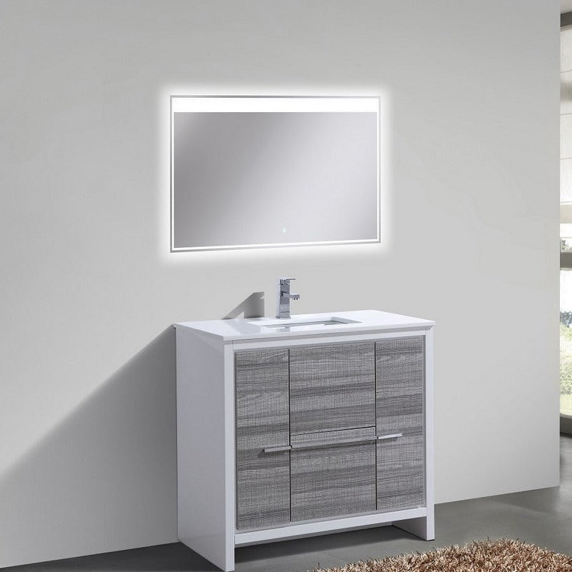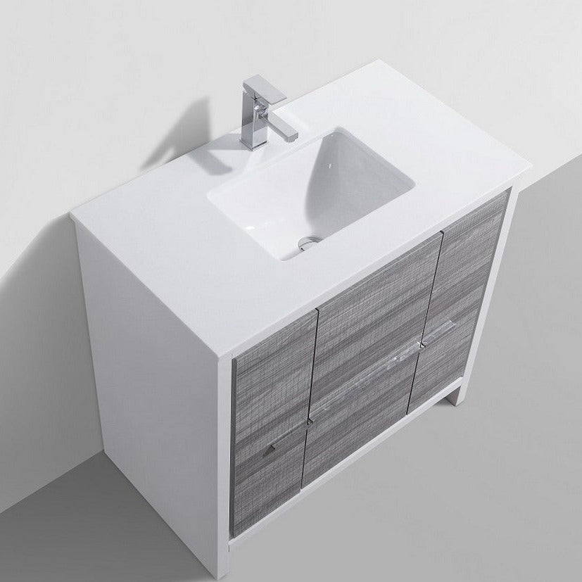 KubeBath Dolce 36″ Ash Gray Modern Bathroom Vanity with White Quartz Counter-Top AD636HG