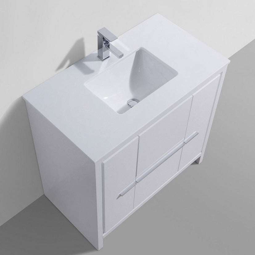 KubeBath Dolce 36″ High Gloss White Modern Bathroom Vanity with White Quartz Counter-Top AD636GW