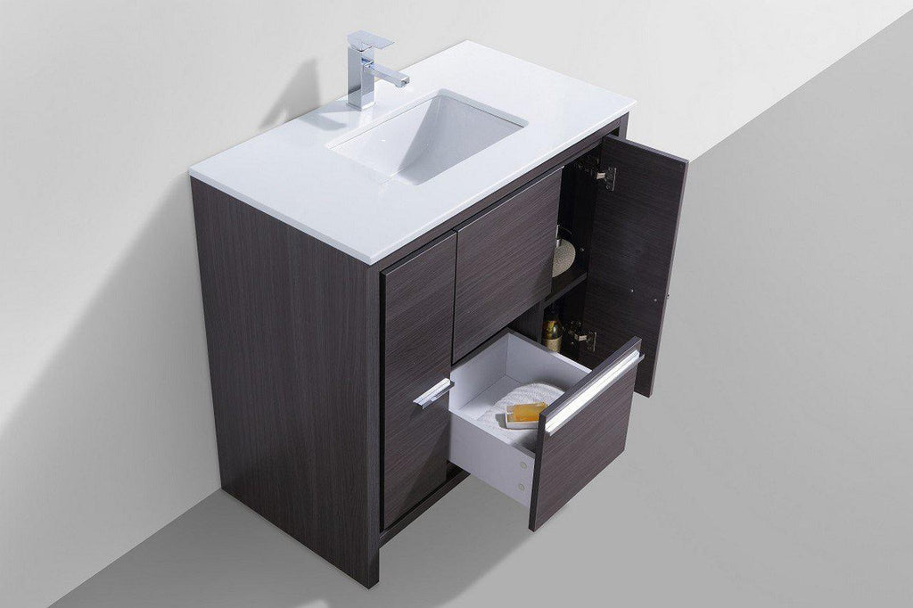 KubeBath Dolce 36 in. Modern Bathroom Vanity with White Quartz Counter Top - Gray Oak, AD636WB