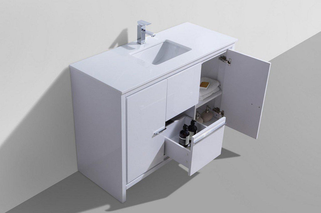 KubeBath Dolce 48 in. Modern Bathroom Vanity with White Quartz Counter Top - High Gloss White, AD648SGW