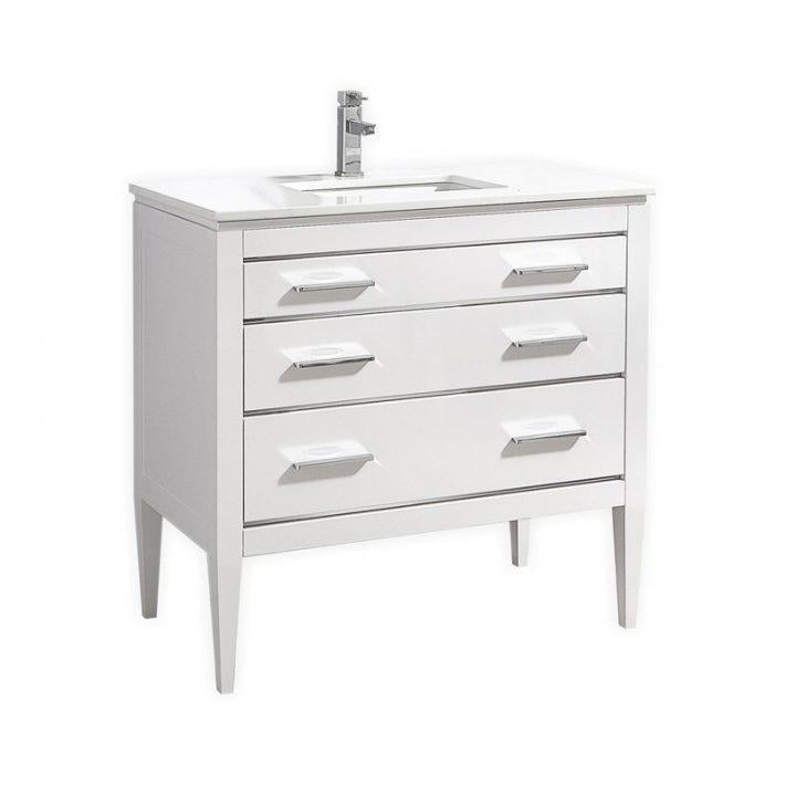 KubeBath Eiffel 36'' High Gloss White Vanity W/ White Counter Top, E36-GW