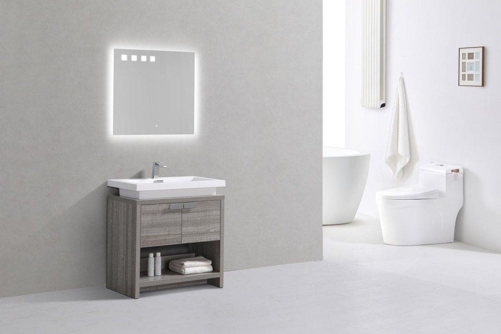 KubeBath Levi 32 in. Modern Bathroom Vanity w/ Cubby Hole - Ash Gray, L800HGASH