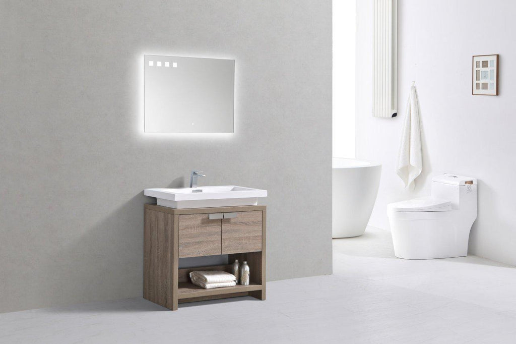 KubeBath Levi 32 in. Modern Bathroom Vanity w/ Cubby Hole - Havana Oak, L800CO