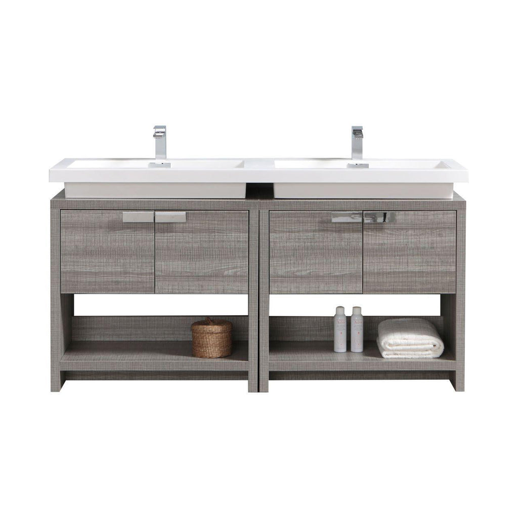 KubeBath Levi 63 in. Modern Bathroom Vanity w/ Cubby Hole - Ash Gray, L1600HGASH