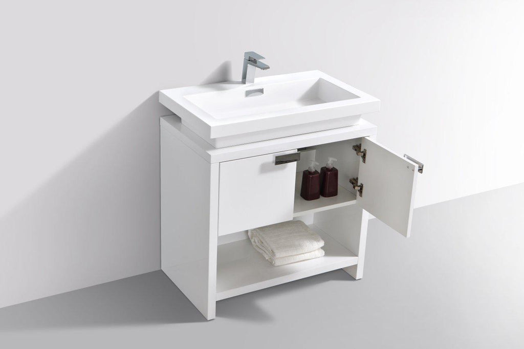 Levi 32 in. Modern Bathroom Vanity w/ Cubby Hole - High Gloss White
