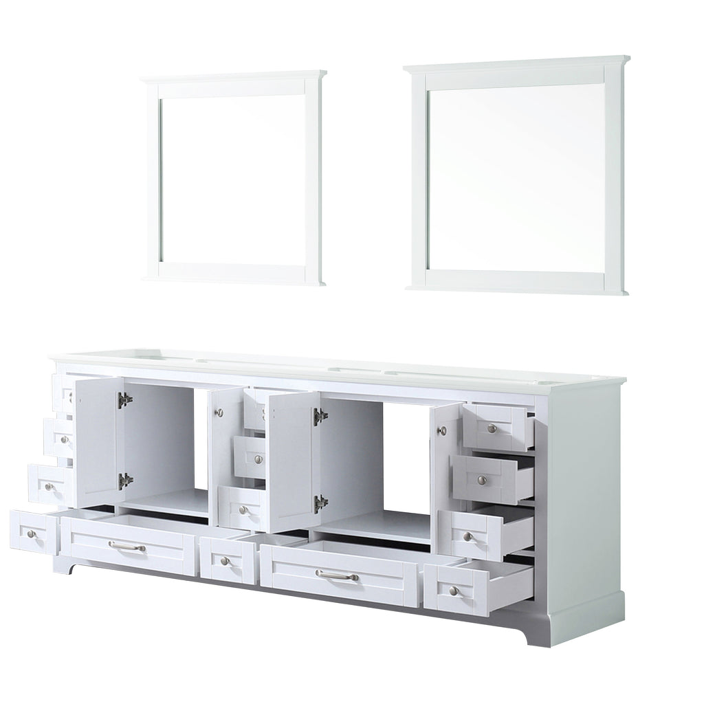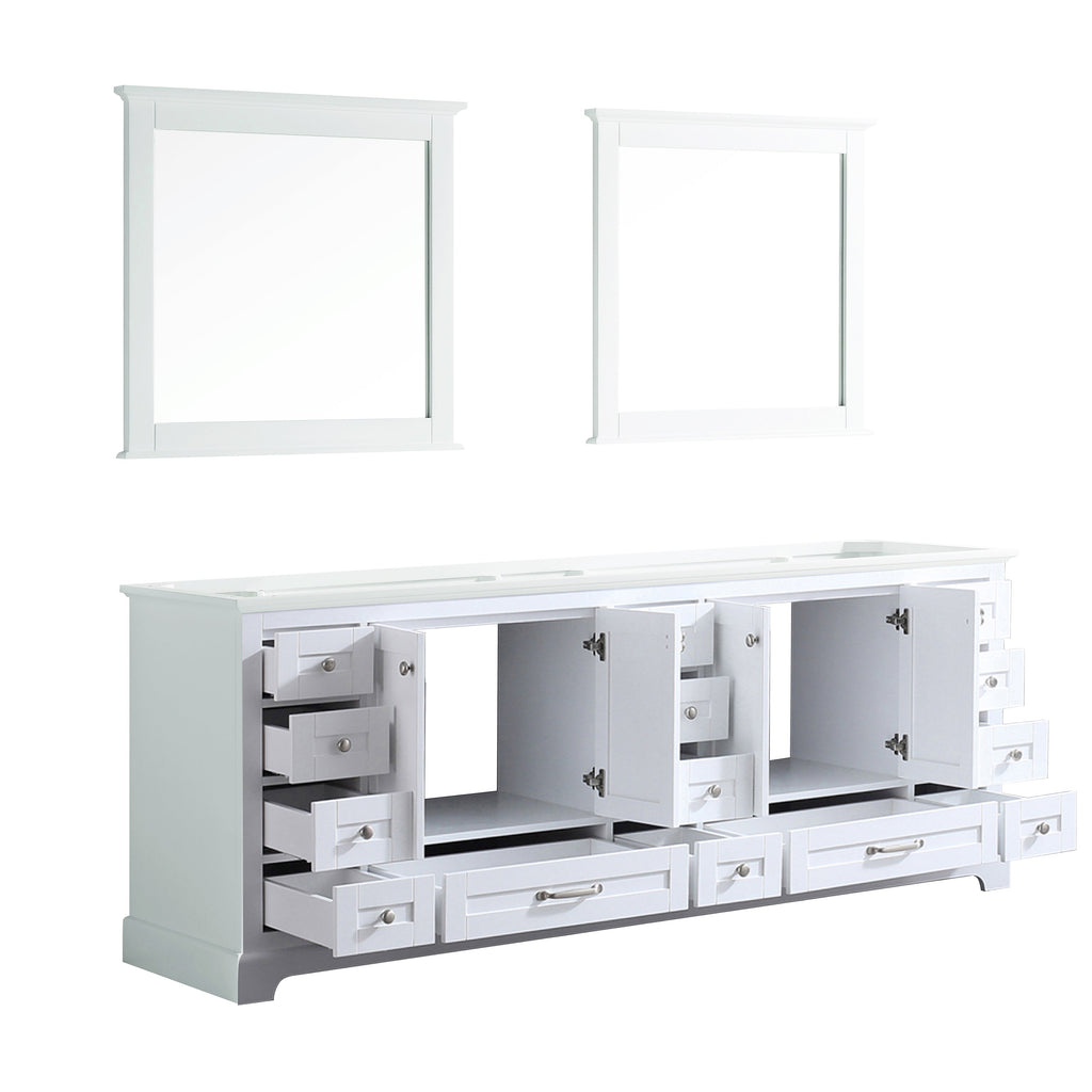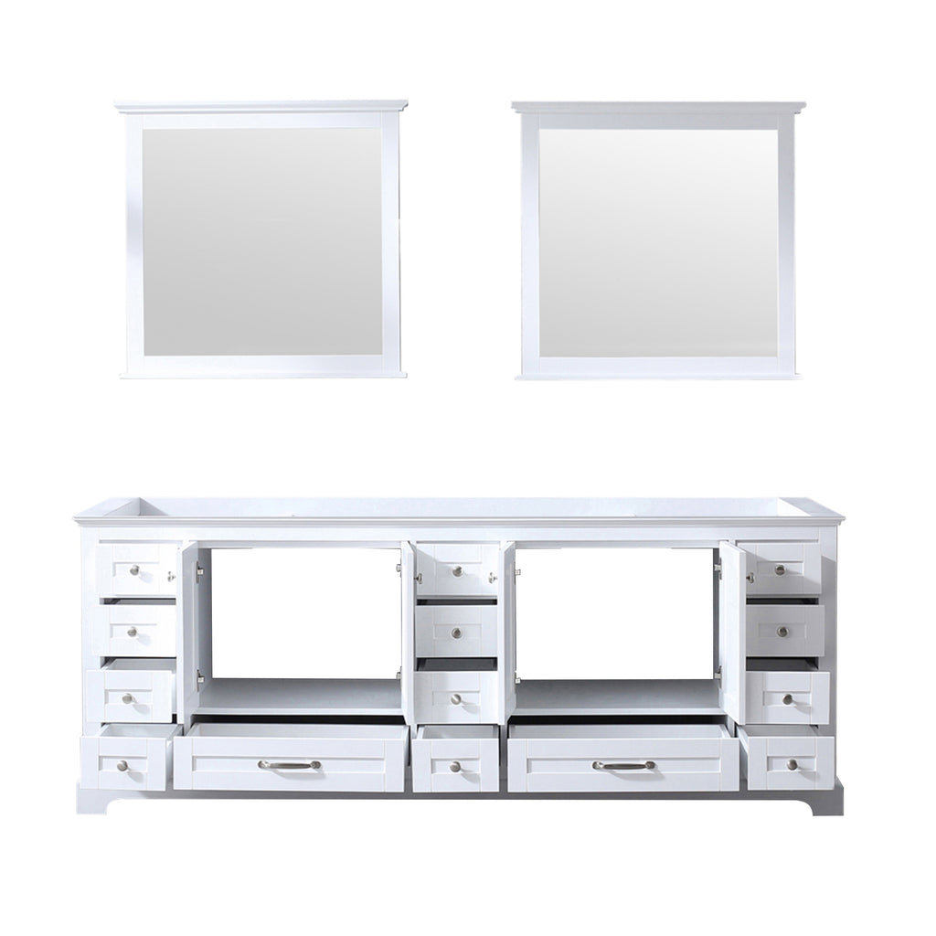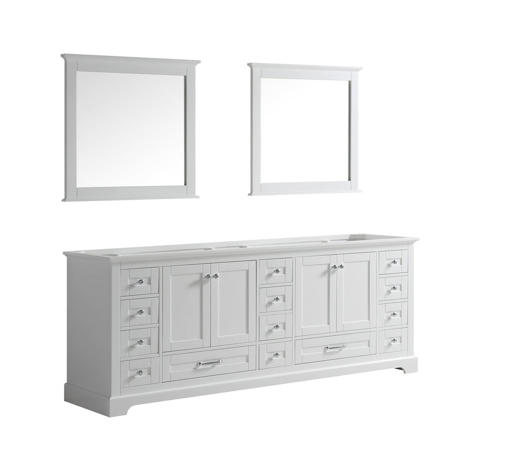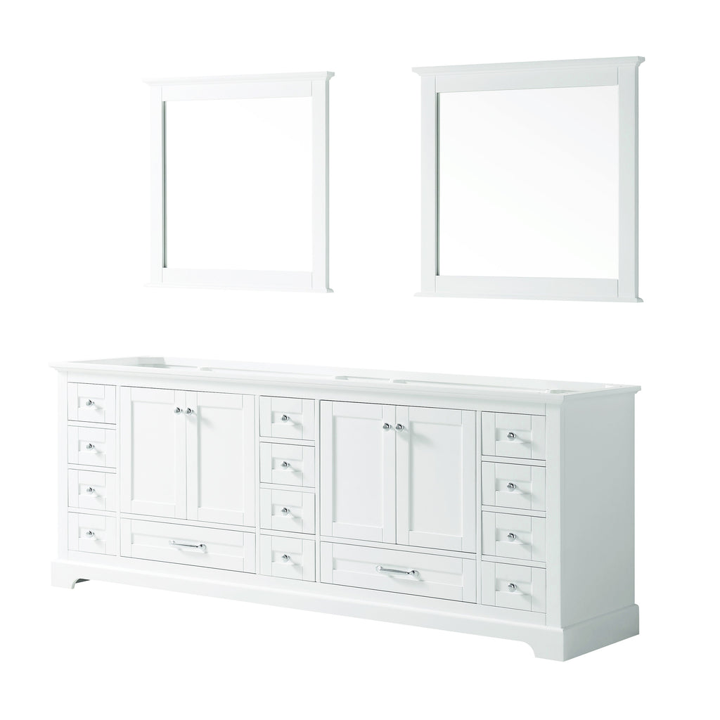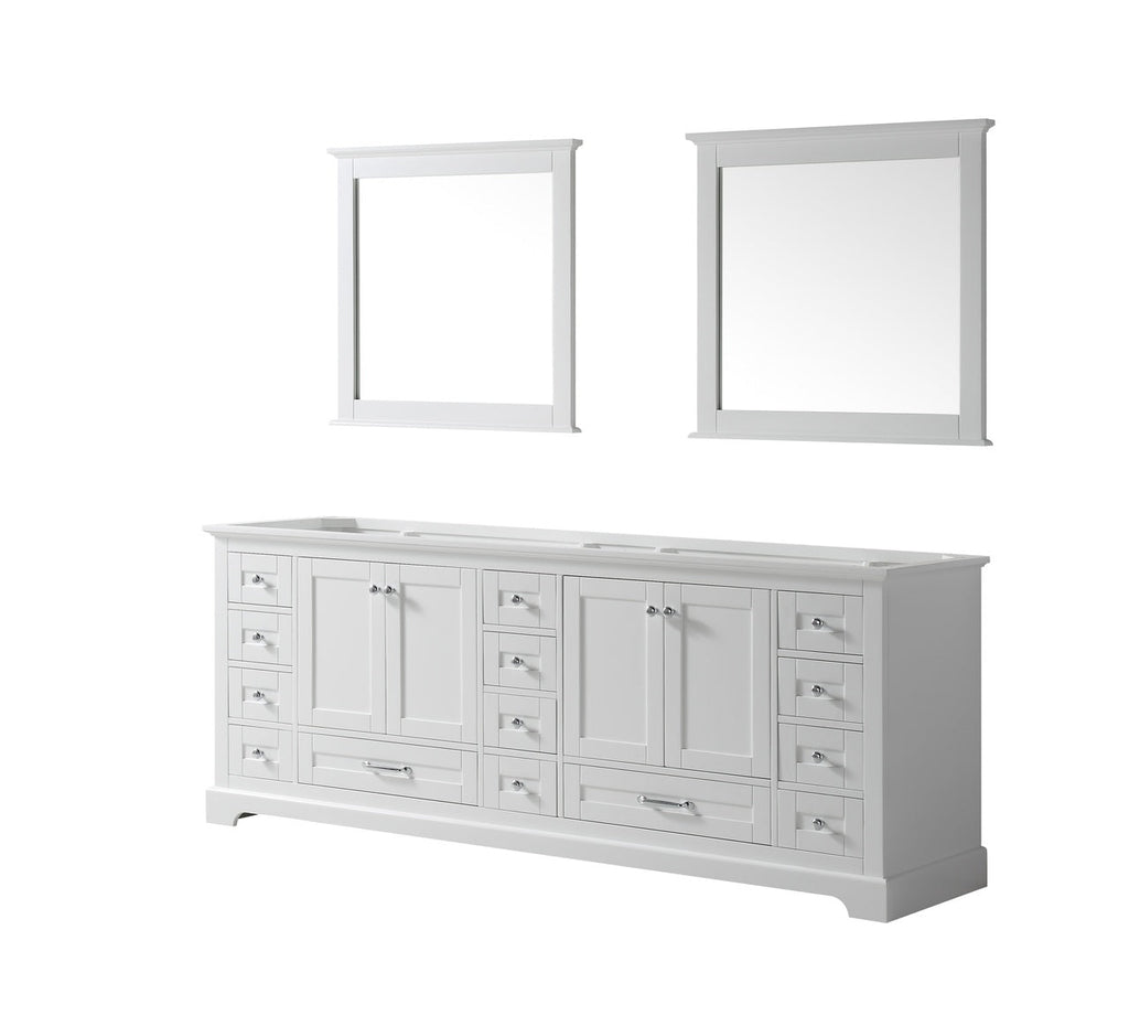 Lexora Dukes 84" White Double Vanity, no Top and 34" Mirrors LD342284DA00M34