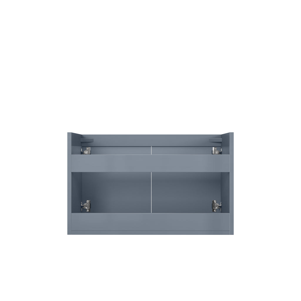 The wall-mounted Geneva vanity in dark grey from Lexora is a beautiful blending of postmodern style and sensible functionality. Its simple, box-like design lends hints of classical style.