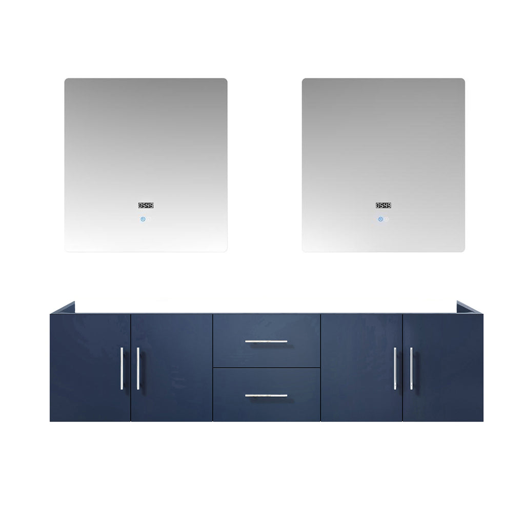 Lexora Geneva 72" Navy Blue Double Vanity, no Top and 30" LED Mirrors- LG192272DE00LM30